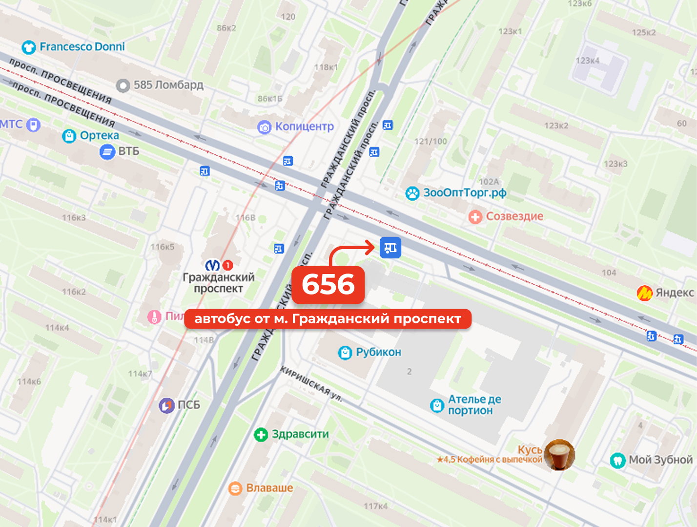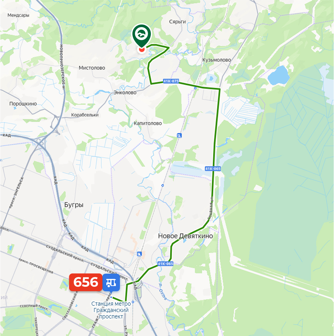 Прямой автобус №656 от м. Гражданский Проспект