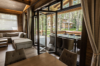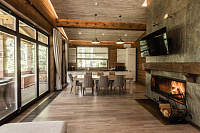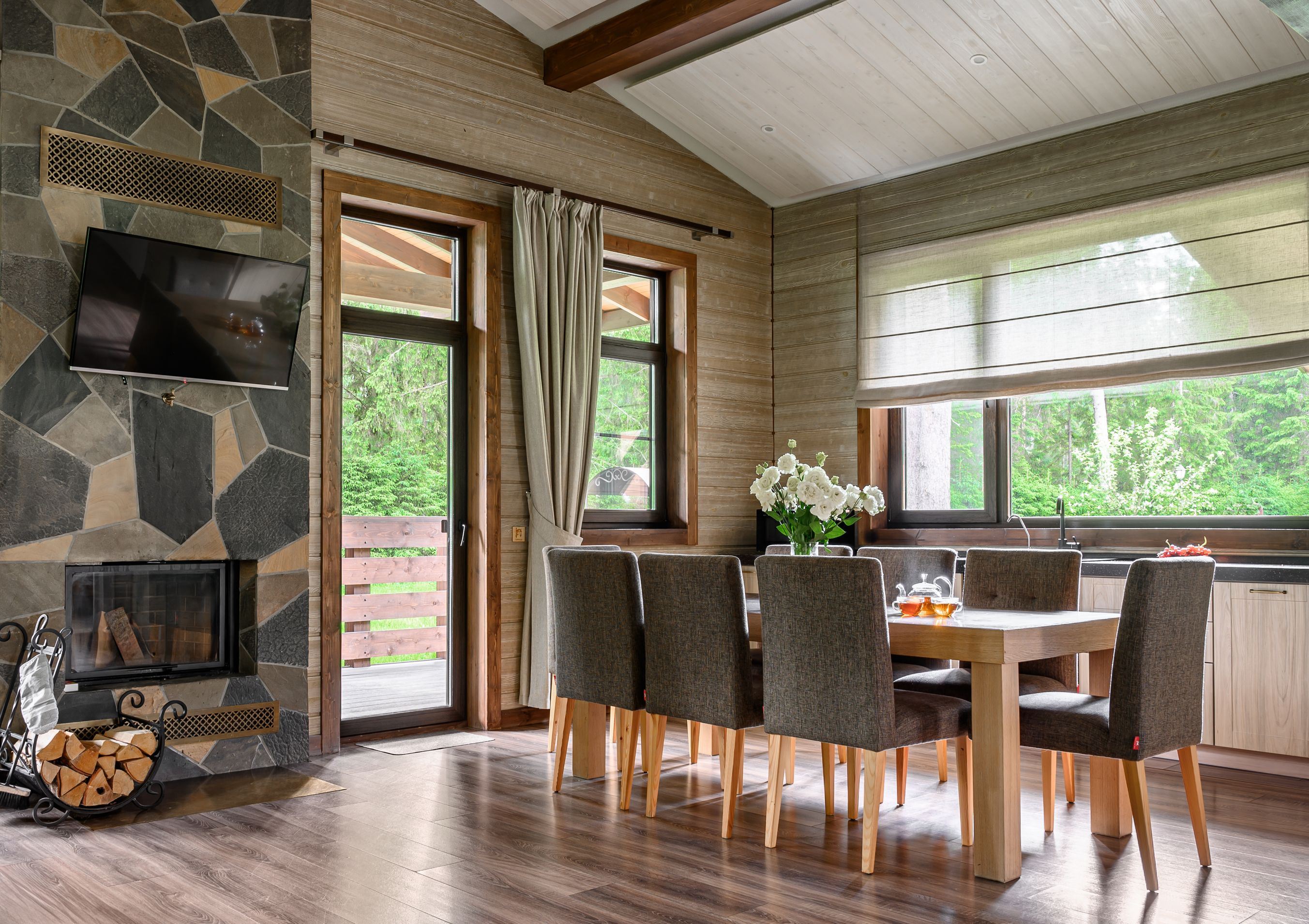 Большие двухэтажные коттеджи в альпийском стиле с просторной террасой, мангальной зоной и прилегающей территорией - олицетворение дома мечты, где можно собраться за большим столом, в гостиной сыграть в настольные игры, а у камина вести теплые разговоры.