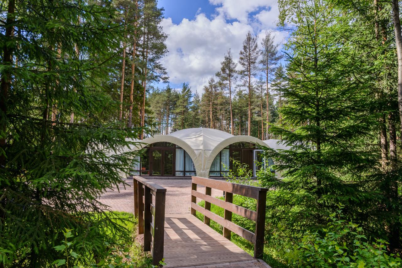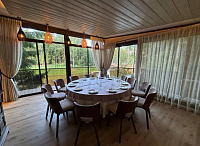 Банкетная площадка, которая работает круглый год. «Лесной» расположен в уединённой части курорта рядом с верёвочным парком. Из панорамных окон открывается вид на лес и водопад.