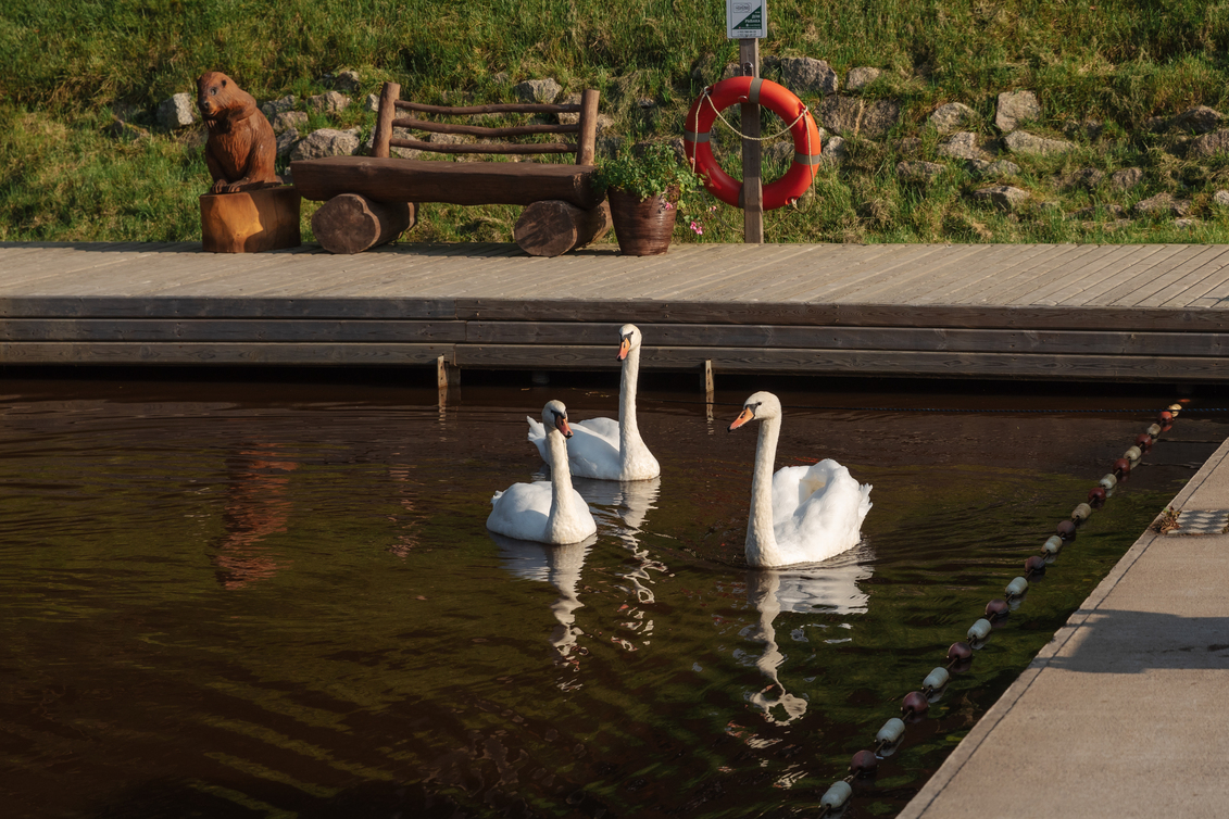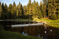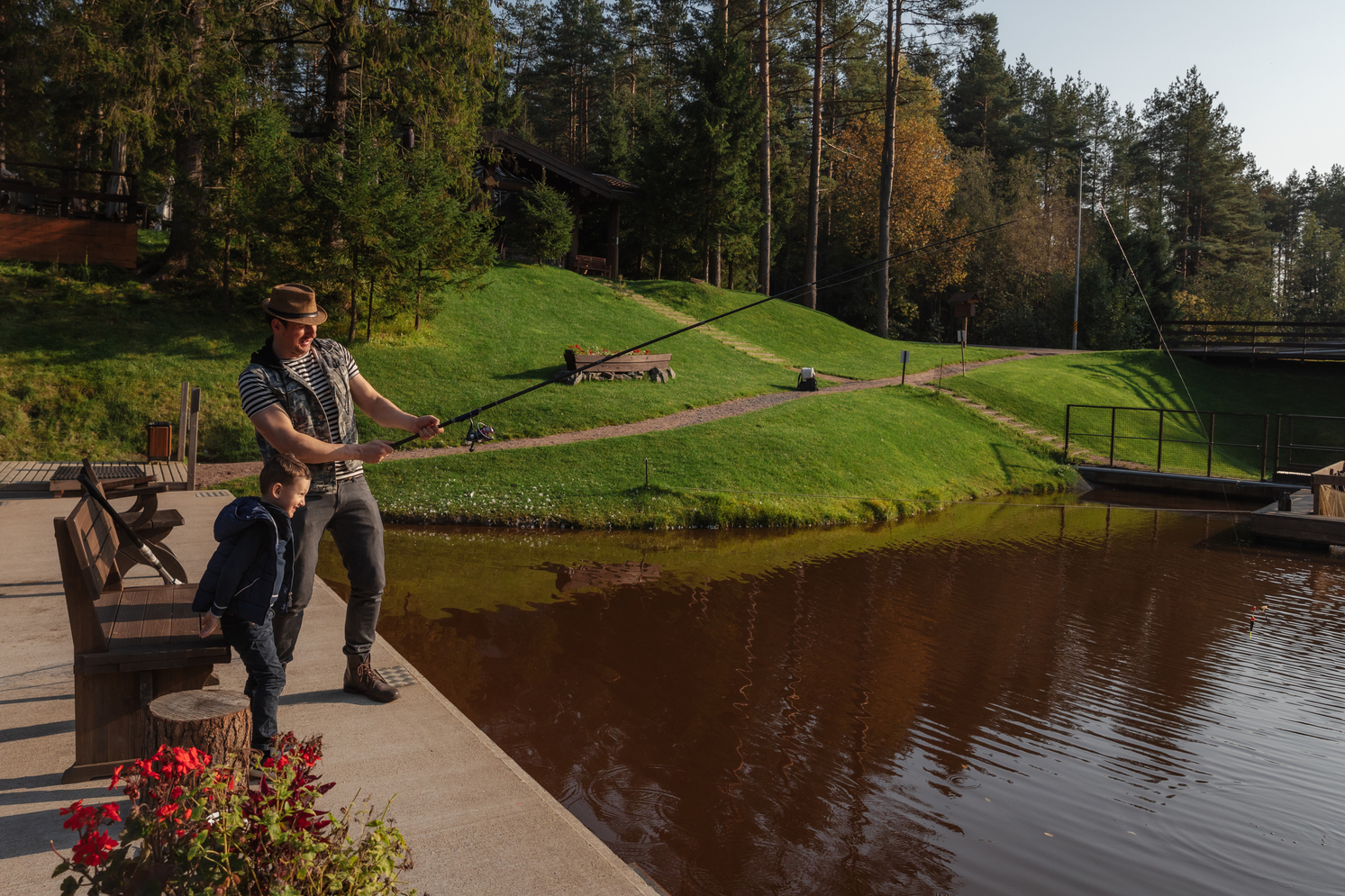 На благоустроенном водоёме с пирсами и зонами отдыха можно спокойно насладиться рыбалкой, а затем отправиться в ресторан. Свежий улов готовят по таёжным рецептам прямо на месте. Водоём населяют: форель, осётр, карп, линь, сом и другие виды рыбы.