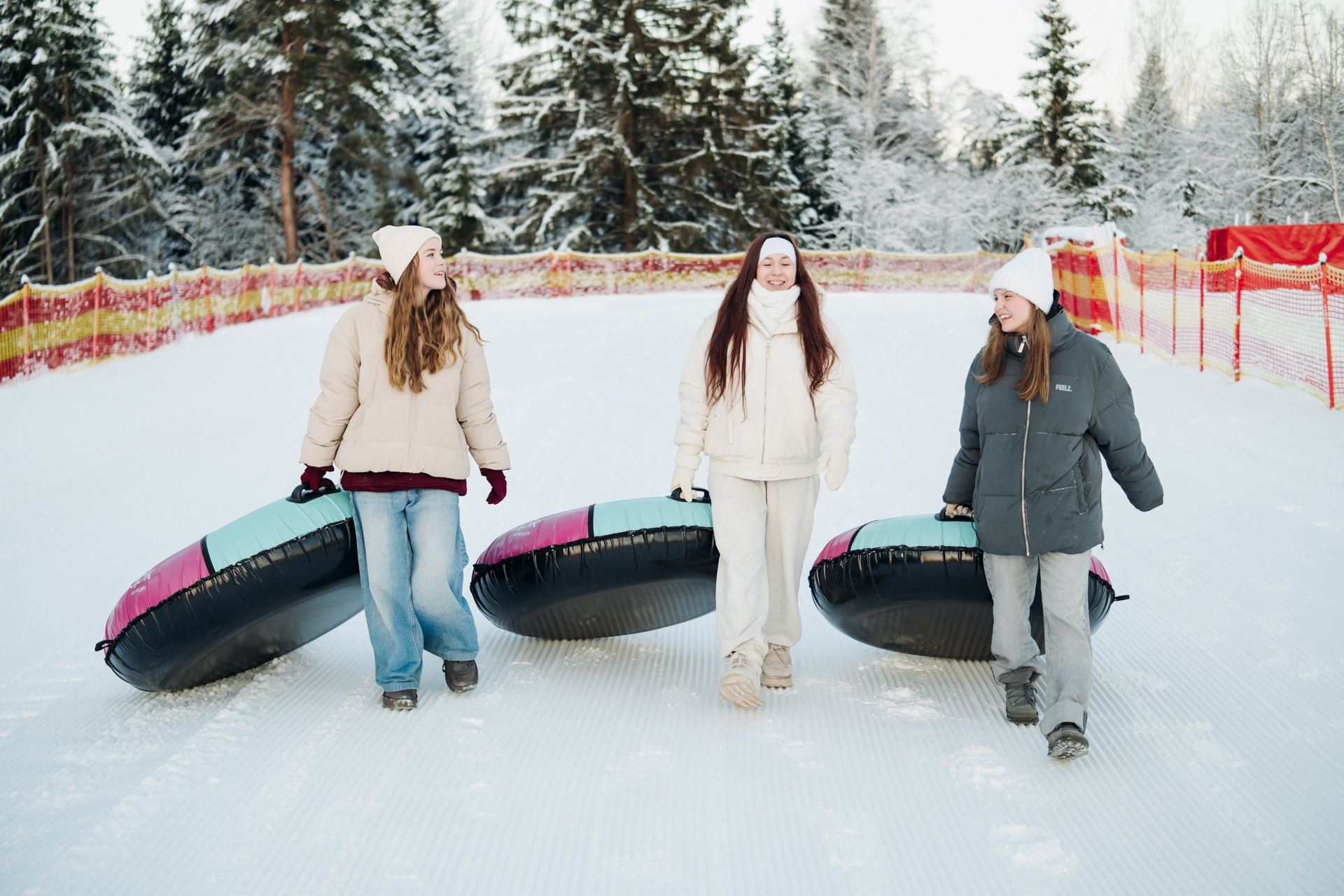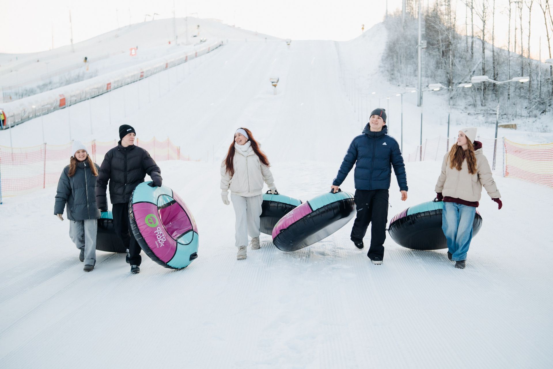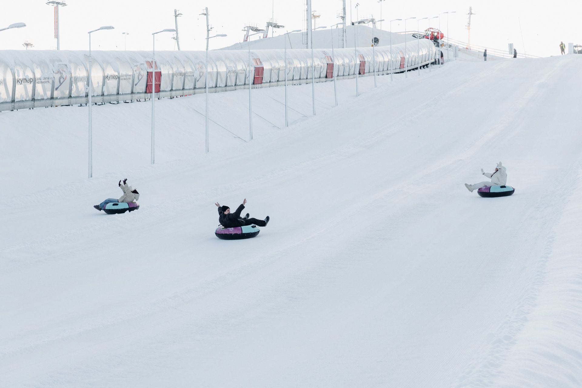 Дети ростом менее 110 см могут кататься только со взрослыми на одной ватрушке.